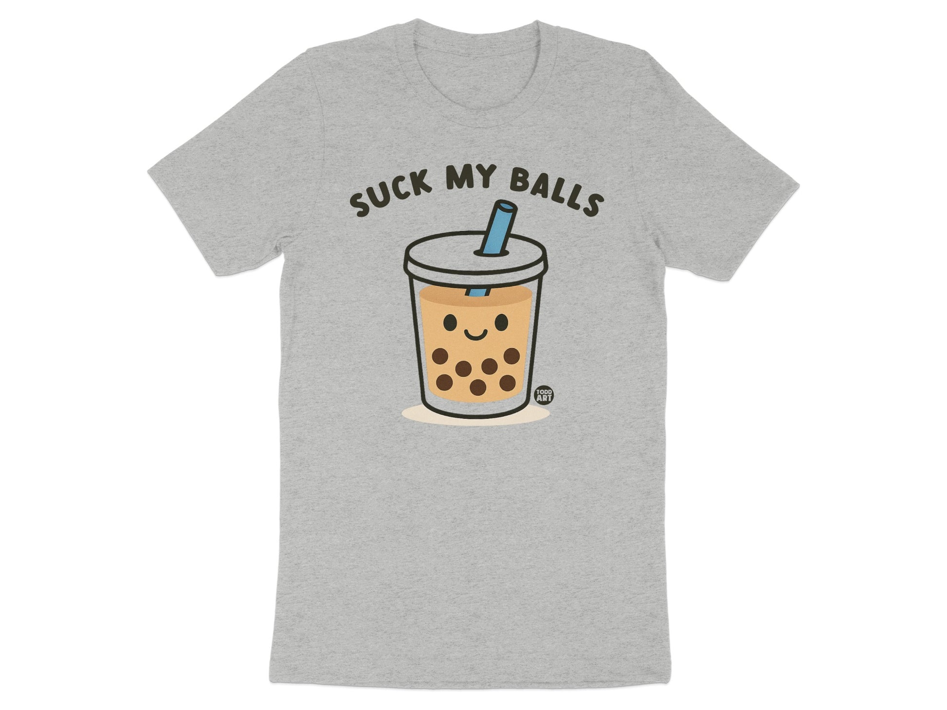 Get a laugh with our funny bubble tea graphic T-shirts featuring the phrase "Suck My Balls". Perfect for casual outings and making a bold statement.